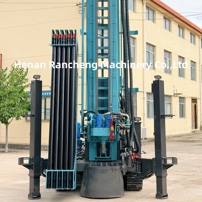 Τελευταία αναβάθμιση RCF350C 350m Ατσάλινη τροχιά Μηχανή γεωτρήσεων νερού με ράφι σωλήνων
